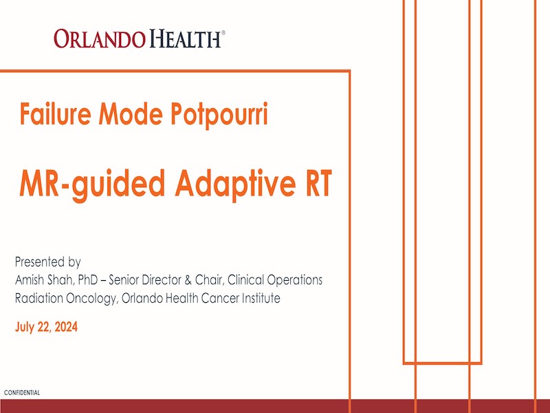 Failure Modes in MR-Guided RadiotherapyPresented by Amish Shah, PhD Orlando Health