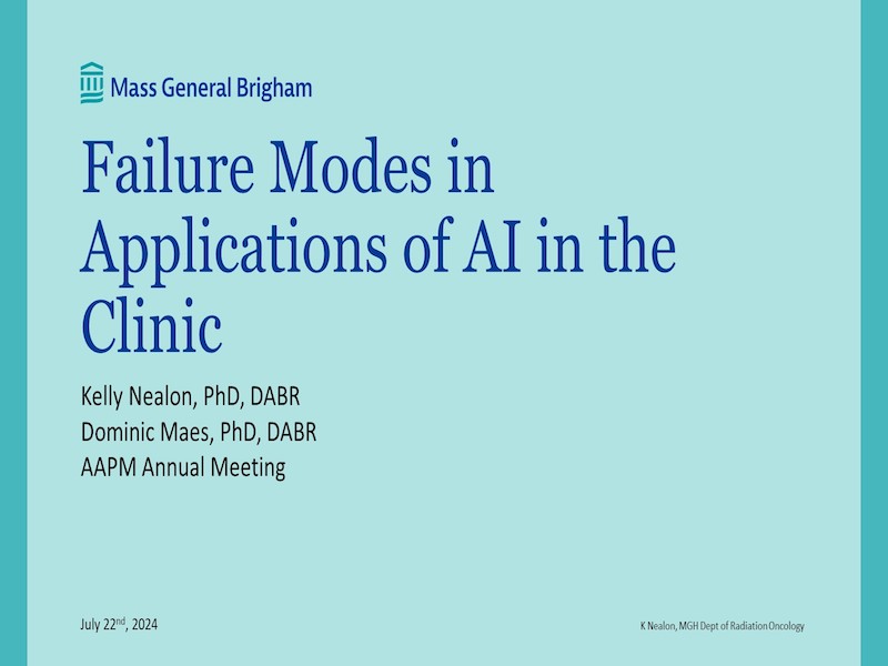 Failure Modes in Applications of AI in the ClinicPresented by Kelly Nealon, PhD Massachusetts General Hospital