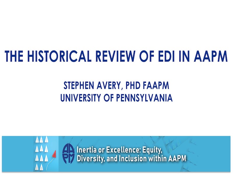 The Historical Review of EDI in AAPMPresented by Stephen Avery, PhD University Of Pennsylvania