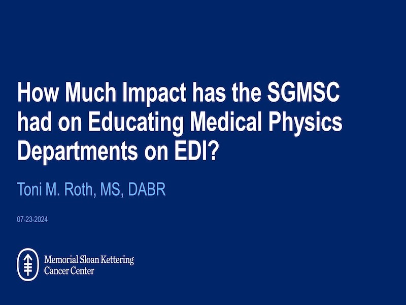 How Much Impact Has the Sexual and Gender Minority Subcommittee Had on Educating Medical Physics Departments on EDI?Presented by Toni Roth, MS Memorial Sloan Kettering Cancer Center