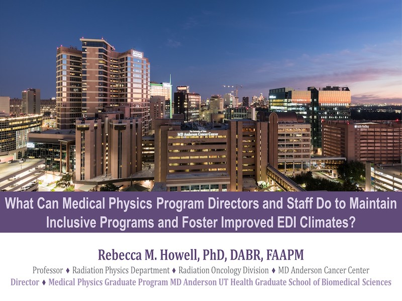 What Can Medical Physics Program Directors and Staff Do to Maintain Inclusive Programs and Foster Improved EDI Climates?Presented by Rebecca Howell, PhD The University of Texas MD Anderson Cancer Center