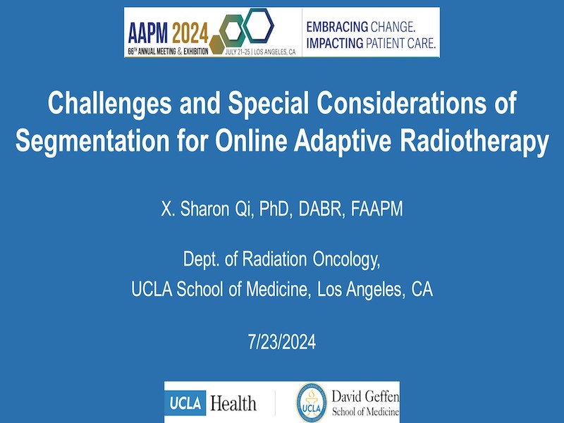 AI in Adaptive Radiation Therapy (CBCT and MRI)Presented by X. Sharon Qi, PhD Department of Radiation Oncology, University of California, Los Angeles