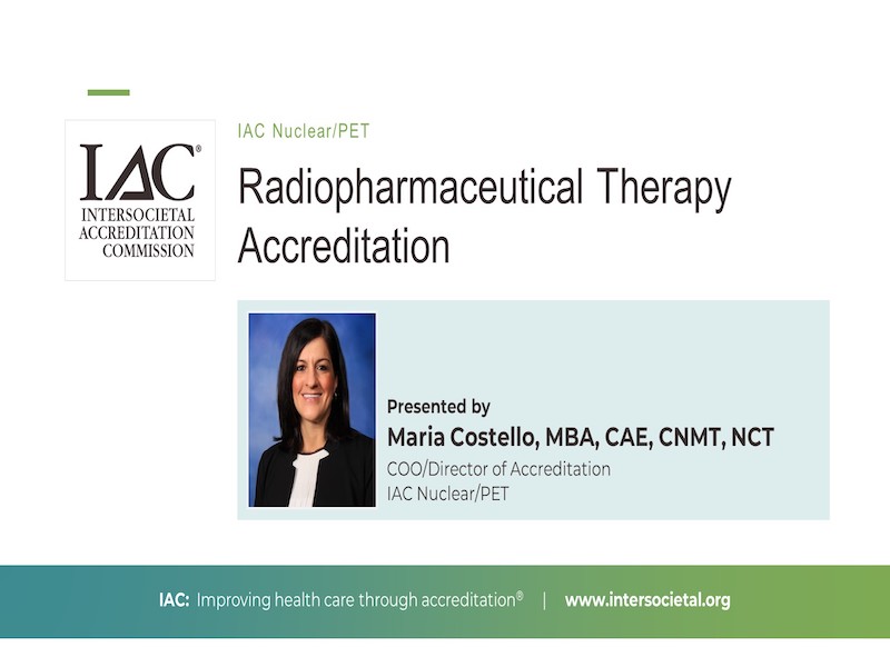 Accreditation for Radiopharmaceutical TherapyPresented by Maria Costello Intersocietal Accreditation Commission (IAC)