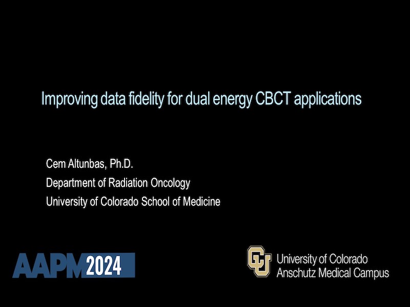 Improving Data Fidelity for Dual Energy Cbct ApplicationsPresented by Cem Altunbas, PhD Department of Radiation Oncology, University of Colorado School of Medicine