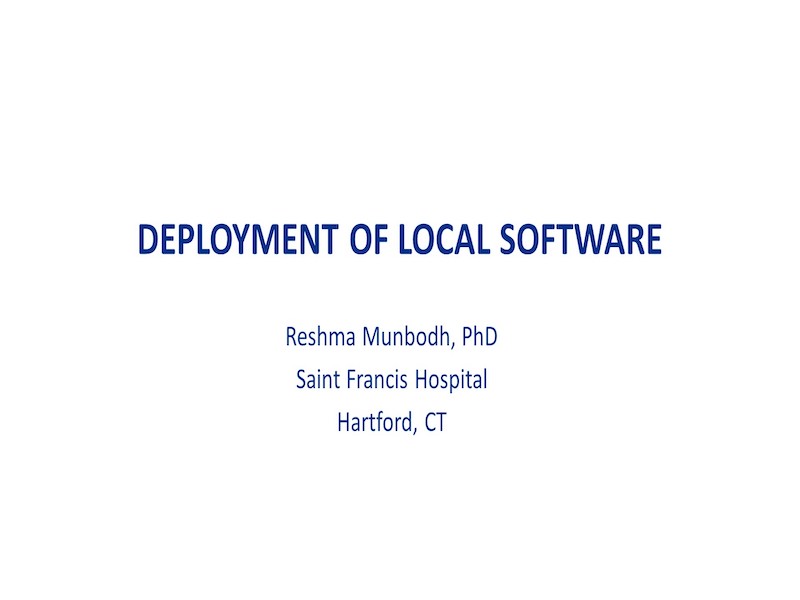 Deployment of Local SoftwarePresented by Reshma Munbodh, PhD Columbia University Irving Medical Center