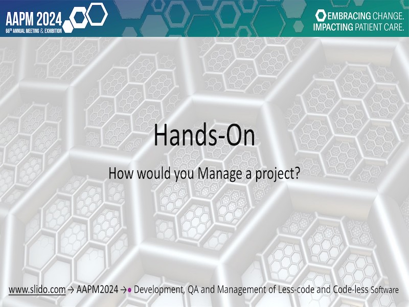 WE-230-152 Development, QA and Management of Less-Code and Code-Less Software