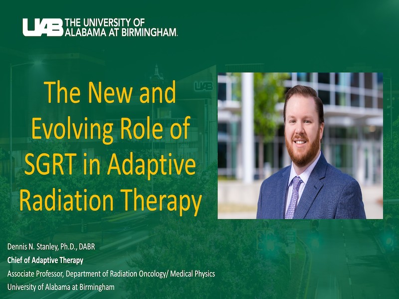 The New and Evolving Role of SGRT in Adaptive Radiation TherapyPresented by Dennis Stanley, PhD The University of Alabama at Birmingham