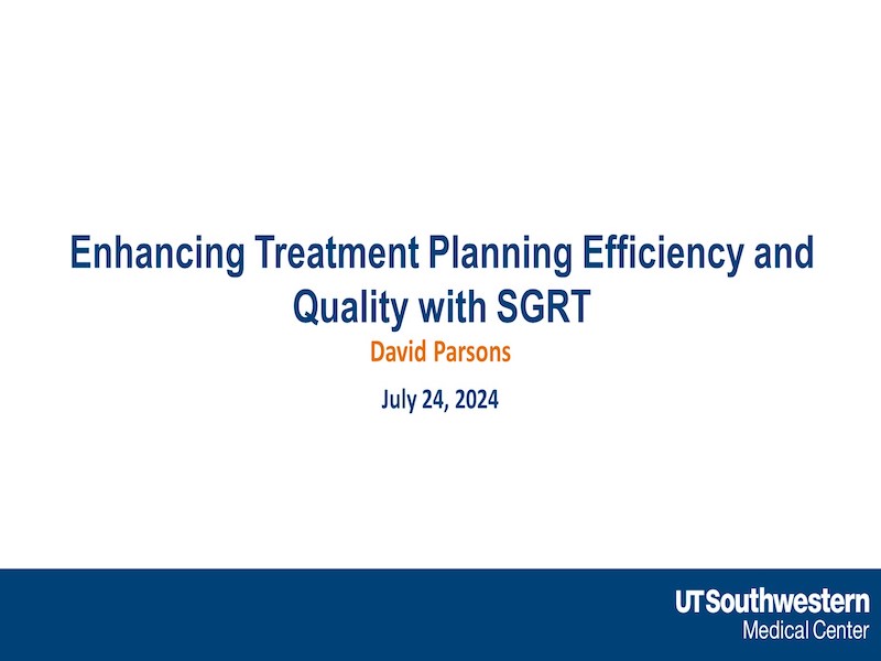 Enhancing Treatment Planning Efficiency and Quality with SGRTPresented by David Parsons, PhD UT Southwestern Medical Center
