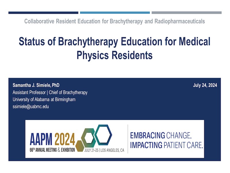 Status of Brachytherapy Education for Medical Physicist ResidentsPresented by Samantha Simiele, PhD University of Alabama at Birmingham