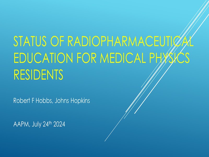 Status of Radiopharmaceutical Therapy Education for Medical Physicist ResidentsPresented by Robert Hobbs, PhD Johns Hopkins University