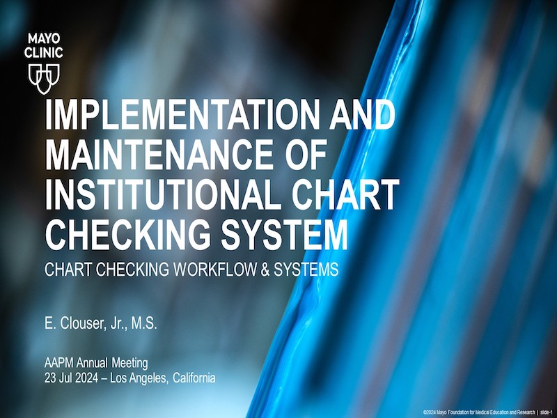Implementation and Maintenance of Institutional Chart Checking SystemPresented by Edward Clouser, MS Mayo Clinic Arizona