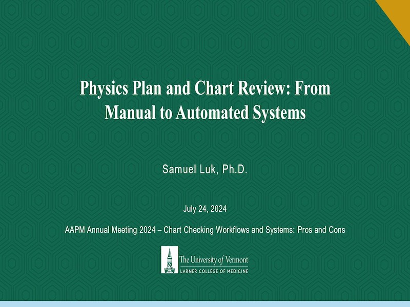 Physics Plan and Chart Review: From Manual to Automated SystemsPresented by Samuel Ming Ho Luk, PhD Department of Radiation Oncology, University of Vermont Medical Center
