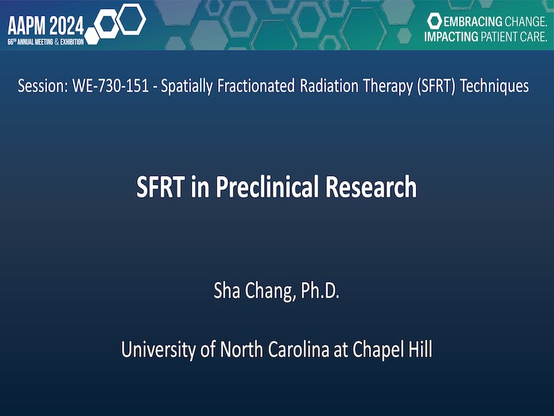 SFRT in Preclinical ResearchPresented by Sha Chang, PhD University of North Carolina School of Medicine