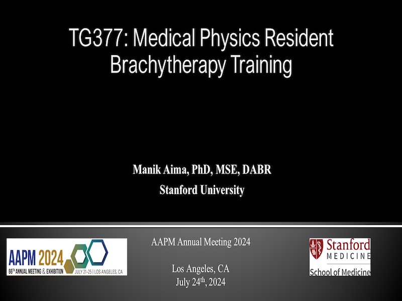 TG-377: Brachytherapy Resident EducationPresented by Manik Aima, PhD, MS Stanford University