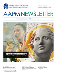 The AAPM Newsletter is also the primary source for AAPM councils, working groups, subcommittees, and officers to share updates with the membership.