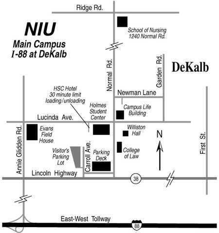 | A number of hotels and motels are available, most within about 1.5 miles of the campus. Of particular note is the Holmes Student Center guest room hotel, located on the NIU campus. The 16-story Holmes Complex is where the sessions will take place. Please be aware that the Summer School has made no arrangements with these hotels for special rates or transportation. It is the responsibility of the registrant to arrange transportation to and from the University campus. Attendees and families not staying in the dorms may purchase their meals by cash at the Blackhawk Cafeteria in the Holmes Center or purchase an optional meal ticket available while registering on-line. | |