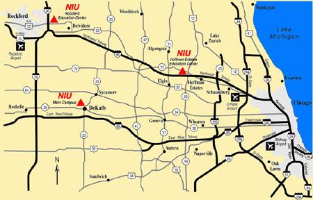 Chartered in 1895, Northern Illinois University is a comprehensive teaching and research institution with a student enrollment of nearly 23,000. Located in one of the most dynamic regions of the country, with its main campus in the City of DeKalb, Northern also operates regional sites in Rockford, Hoffman Estates, Oregon, and Naperville (scheduled to open fall 2000). The university is composed of seven degree-granting colleges that together offer 54 undergraduate majors; 70 graduate majors, including 10 Ph.D. programs, doctoral degrees in Education and the Juris Doctorate. NIU is a NCAA Division I school and the NIU Huskies compete in the Mid-American Conference. Visit the NIU CAMPUS web site |